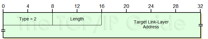 Type: Identifies the ICMPv6 option type. For the Target Link-Layer Address option, the value is 2.