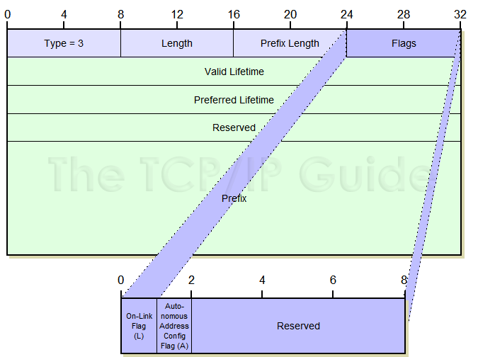Type: Identifies the ICMPv6 option type. For the Prefix Information option, the value is 3.