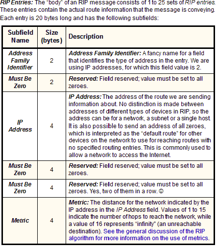 Figure 176: RIP Version 1 (RIP-1) Message Format The RIP-1 message format can contain up to 25 RIP Entries. Here, RIP Entry #1 is shown here with each of its constituent subfields.